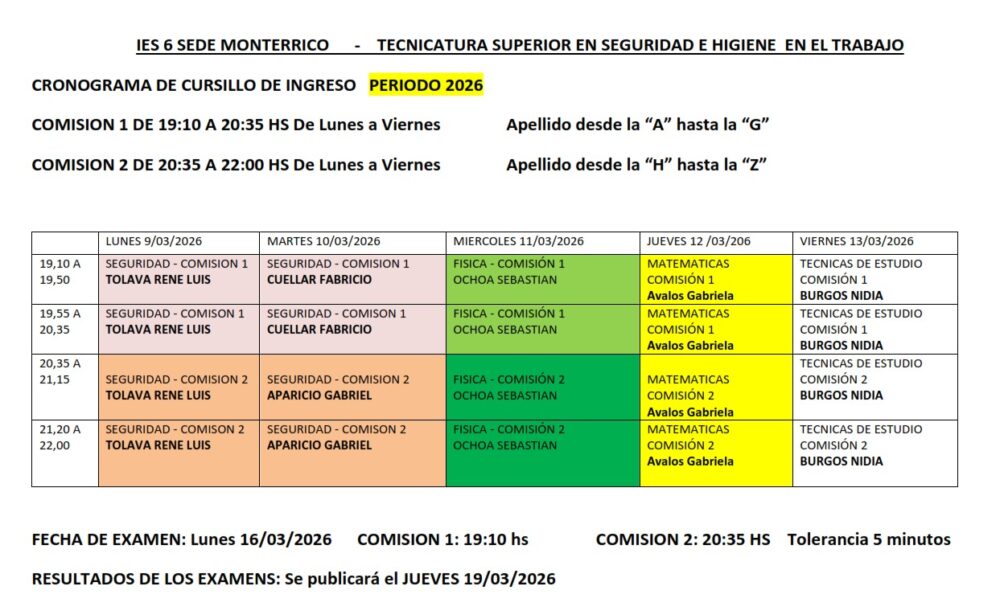 CURSO DE INGRESO INICIA A LAS 19;30 HS.