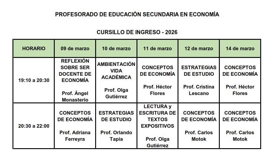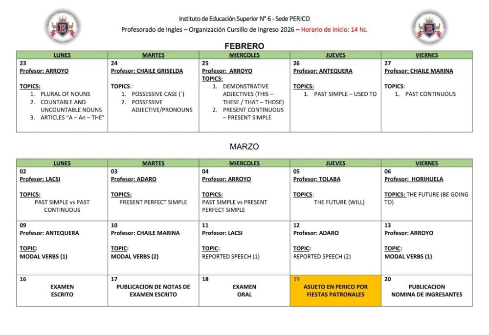 PROFESORADO DE INGLES – CURSILLO DE INGRESO 2026 HORARIO DE INICIO: 14 HS