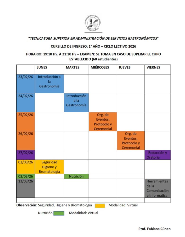 TECNICATURA SUPERIOR EN ADMINISTRACIÓN DE SERVICIOS GASTRONÓMICOS