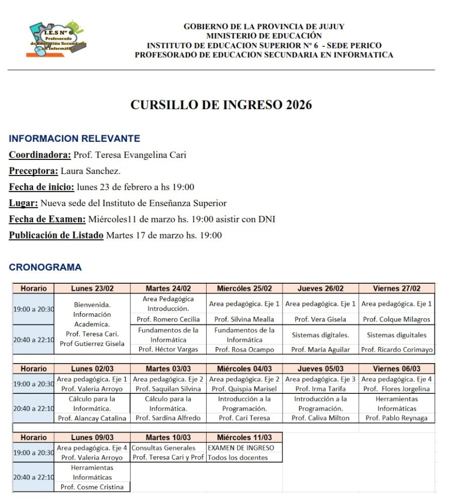PROXIMAMENTE SE INFORMARÁ SOBRE EL CURSO DE INGRESO PARA LAS OTRAS CARRERAS…
